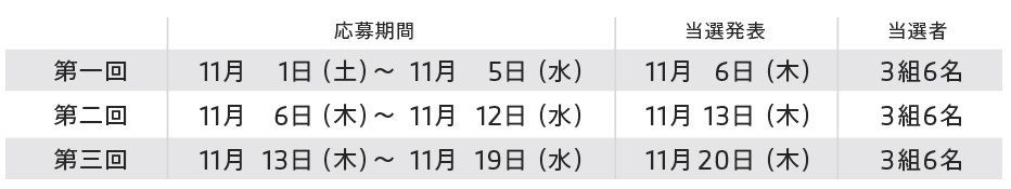 ■当選者の決定方法や個別の応募者についての当選の有無等、当選に関するご質問の受付は行っておりません。